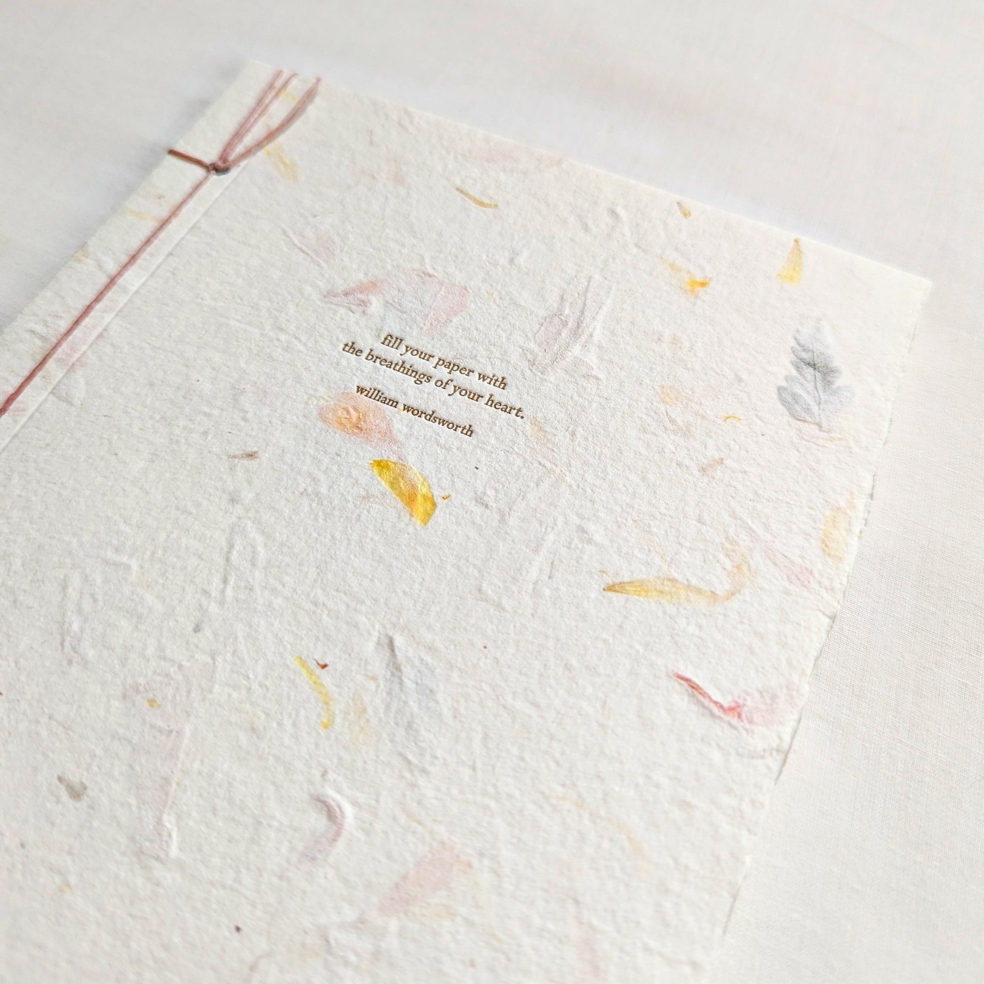 Inspiration Journal: What better place to write down your thoughts than in this beautiful hand-bound inspiration journal, made with paper from recycled cotton. Size is approx. 6x8”.